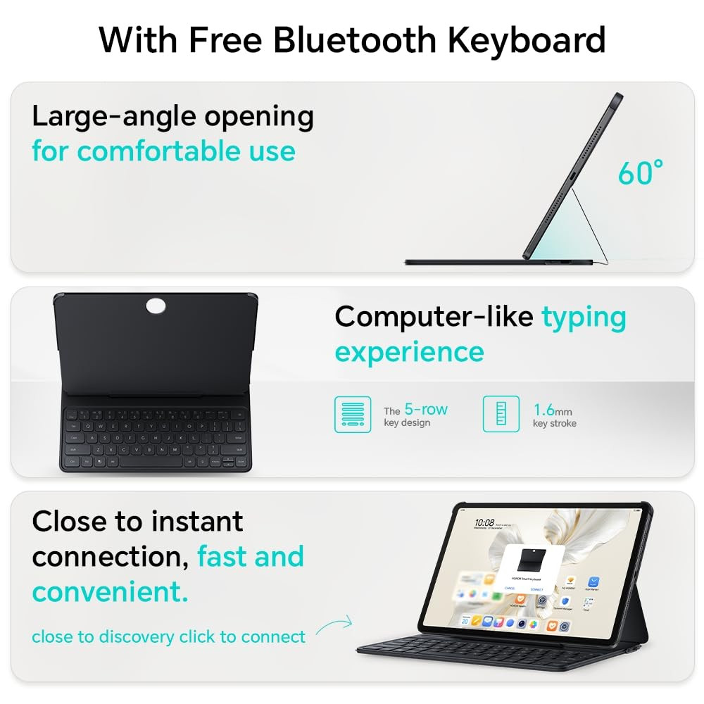 HONOR Pad 9 (Smartchoice) WiFi Tablet with Free Bluetooth Keyboard, 12.1-Inch 2.5K Display, 8GB, 256GB Storage, Snapdragon 6 Gen 1 (4nm), 8 Speakers, Up-to 17 Hours, Android 13, Metal Body, Gray