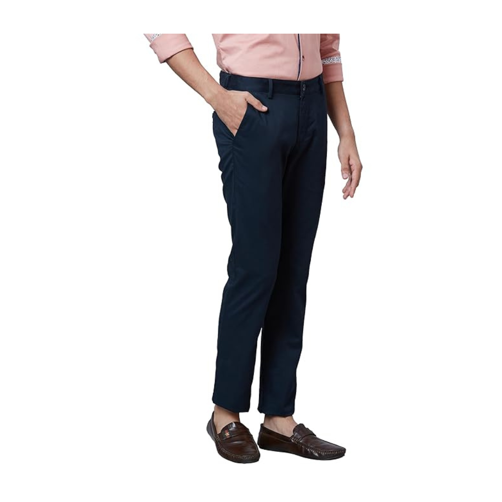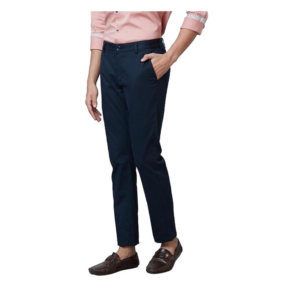 Park Avenue Men's Regular Fit Mid Rise Neo Fit Cotton Blend Solid Pattern Flat Front Casual Chinos